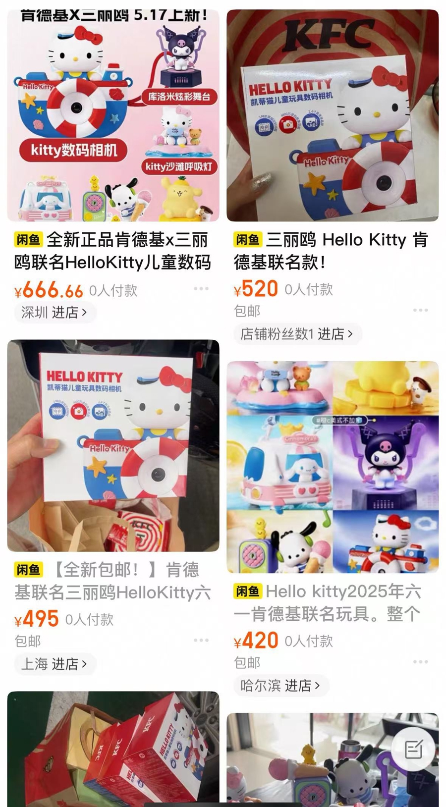 有网友晒出自己“抢”到肯德基“儿童数码相机桶HELLO KITTY”的截图该款玩具为何如此受欢迎?据一名“三丽鸥家族”资深粉丝对新民晚报记者表示,从外观上来看,HELLO KITTY为“三丽鸥家族”的代表卡通形象之一,原本就深受广大儿童及成人喜爱。从产品参数上来看,数码相机配备KFC开机动画,内置3款贴纸滤镜,像素高达1080p,照片也带有满满的“复古感”,可谓“颜值”与“实用”兼备。